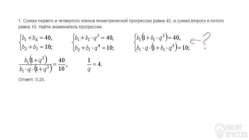 B2 расписали как b1*q, а потом вынесли за скобки, в двух уравнения получились одинаковые множители, поэтому одно разделили на другое и получили отношение