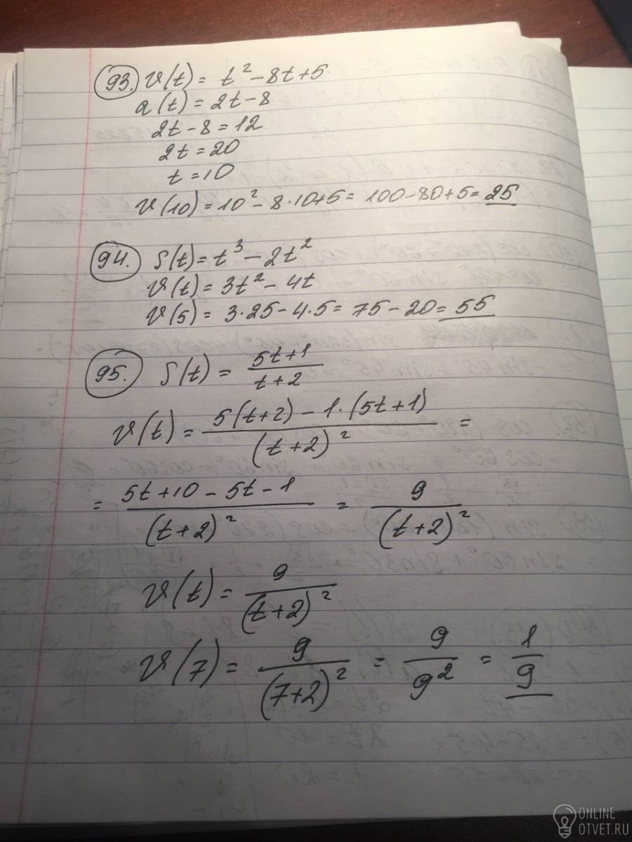 Чтобы найти скорость, мы находим производную пути (вроде так, если есть ответы, то посмотри по ответам).