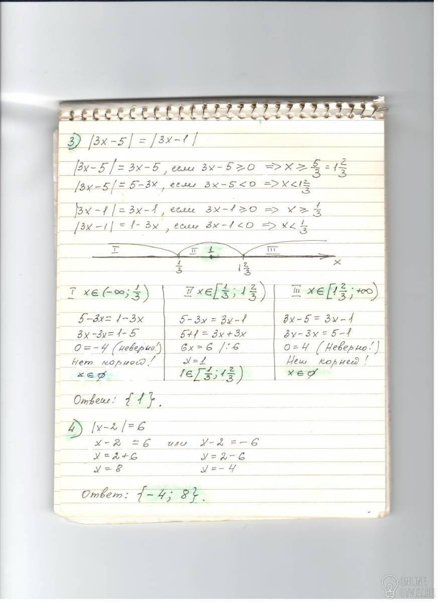 3) |3x-5|=|3x-1|