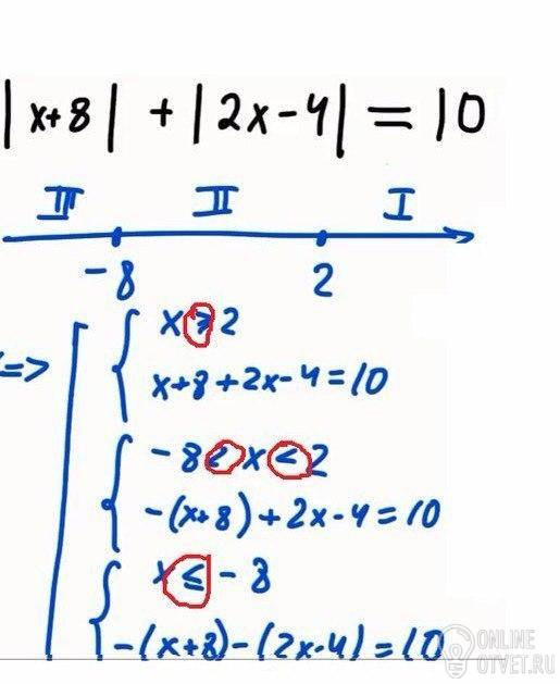 1) x < -8, тогда x < 2, оба выражения под модулем отрицательны.