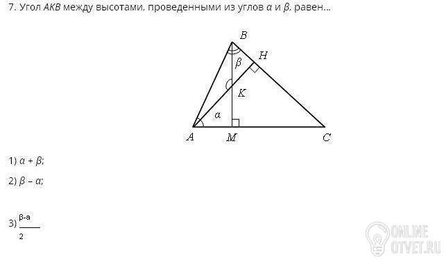 угол AKB = 180° - ∠ABM - ∠BAH = 180° - 90° + α - 90° + β = α + β