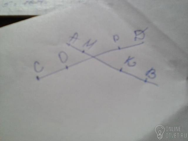 Начертите пж прямую AB и луч OM и отрезок CD и EK так,чтобы отрезок CD лежал на прямой AB , луч OM ПЕРЕСЕКАЛ отрезок EK. Будет ли прямая AB пересекать луч OM