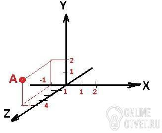 Изобразите систему координат Oxyz и постройте точку А(-1; 2; 4). Найдите расстояние от этой точки до координатных плоскостей.