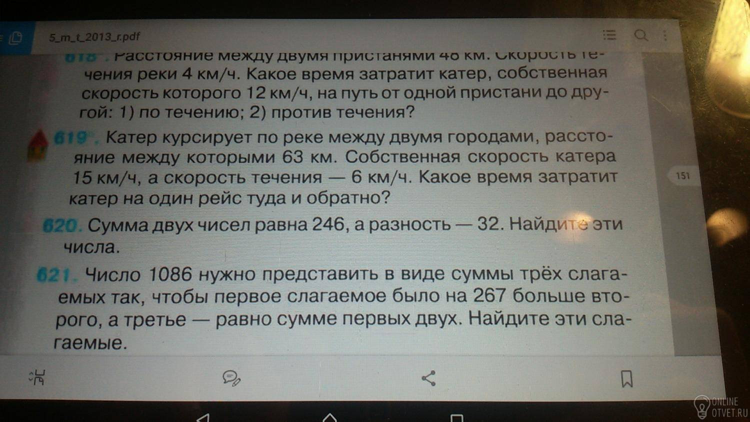 4) 63/9=7 часов понадобится катеру, чтоб доплыть в другую сторону против течения.