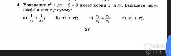 б) x1² + x2² = (x1 + x2)² - 2*x1*x2 = p² - 2*(-2) = p² + 4 - ОТВЕТ