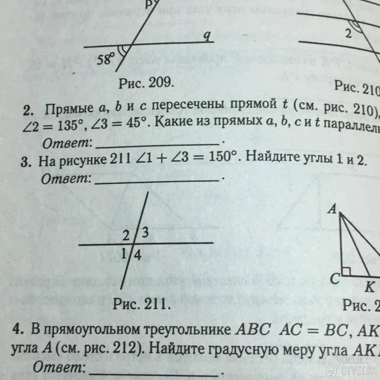 Угол 1 + угол 3 = 150. если присмотреться, то можно увидеть, что угол 1 и угол 3 равны между собой (т.к. они вертикальные), из чего следует, что они оба равны 150/2=75. идем дальше: 1 и 2 угол смежные (то есть, их сумма составляет 180 градусов). угол 1 у нас есть; вычитаем из 180 75 и получаем 105.
