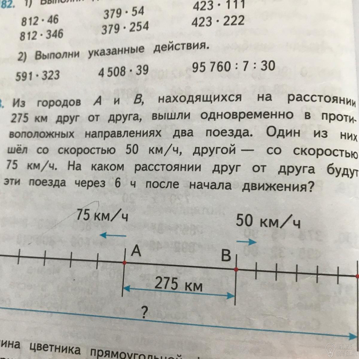 300+450+275=1025 км - расстояние между поездами через 6 часов.