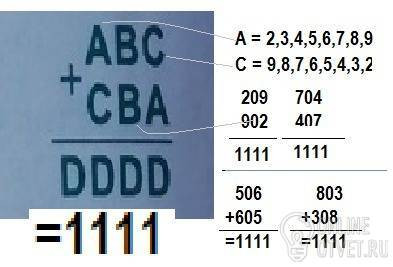 Какую цифру заменяет буква В в ресурсе справа. ребус:ABC+CBA=DDDD. ОТВЕТЫ:А) 22,Б) 20,В) 19,Г) 18,Д) 17