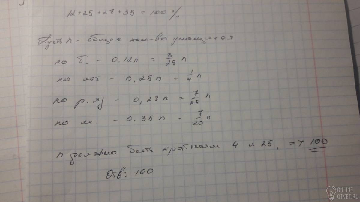 четырём предметам. Из них 12% участвовали в олимпиаде по биологии, 25% — по