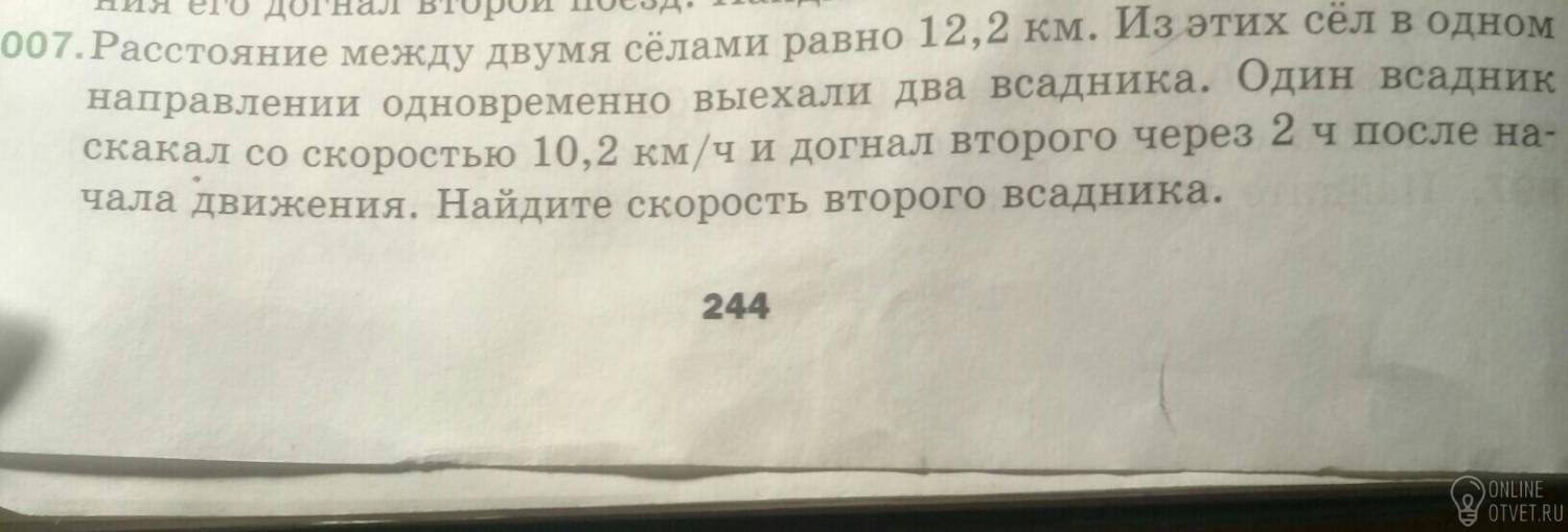 20,4-12,2=8,2 км. проехал второй всадник