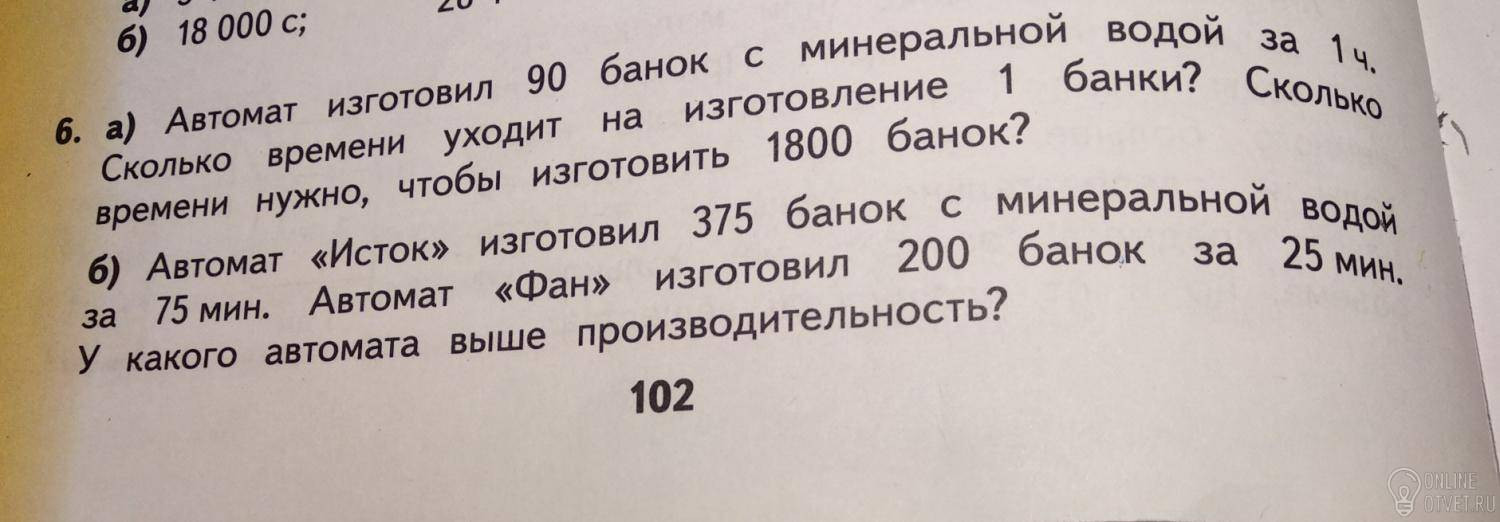 1) 375 : 75 = 5 (б/мин) - производительность автомата (Исток)2) 200 : 25 = 8 (б/мин) - производительность автомата (Фан)3) 5 < 8 на 8 - 5 = 3 банки в минуту, значит производительность автомата (Исток) производительности автомата (Фан)Ответ: у автомата (Фан) производство выше.