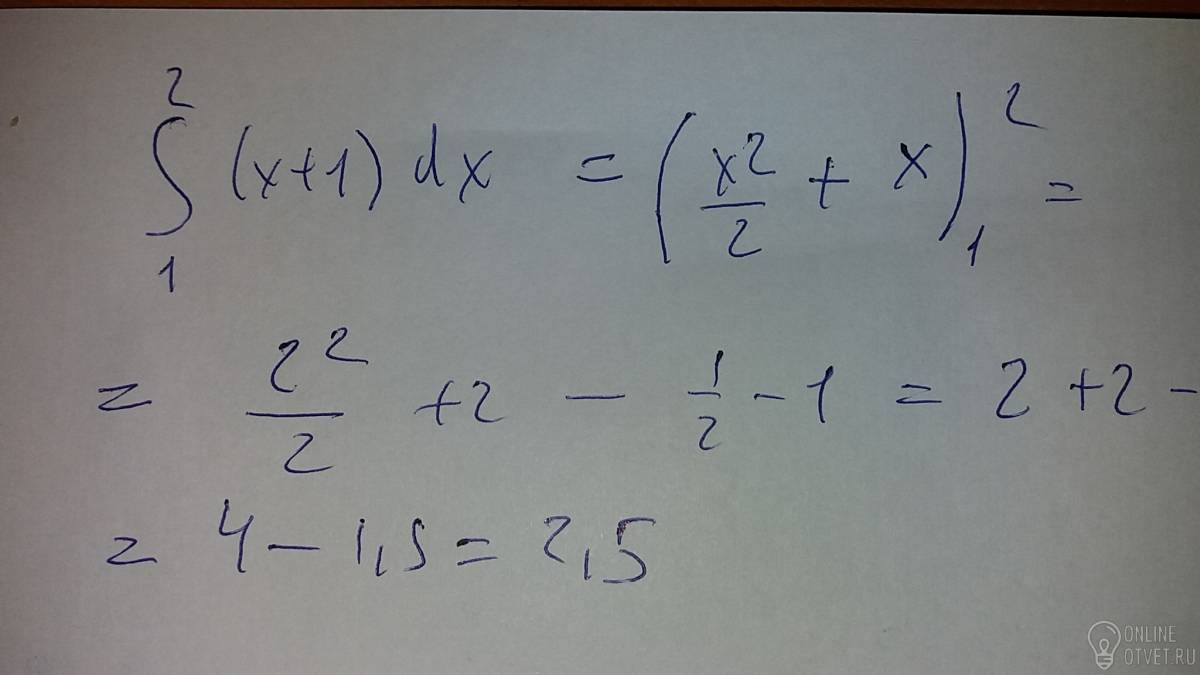1. Вычислить определенный интеграл: интеграл вверху 2 внизу 1 (х+1)dx