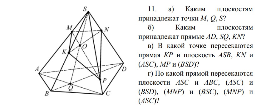 а) М ∈ (ASD), М ∈ (ASB), М ∈ (KNP)