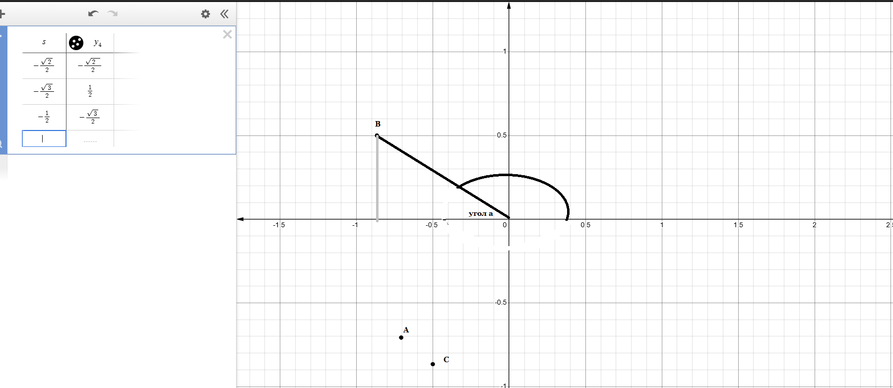 В единичной полуокружности имеются координаты: