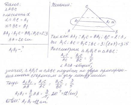 Плоскость а пересекает стороны АС и ВС треугольника АВС в точках А, и В соответственно так, что АА1:А1С=ВВ1: В1С= 1: 3. Докажите, что АВ || а и найдите А1В1, если АВ=12?