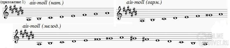 В качестве примера построила ais-moll (7#) трех видов (см.пр.1)