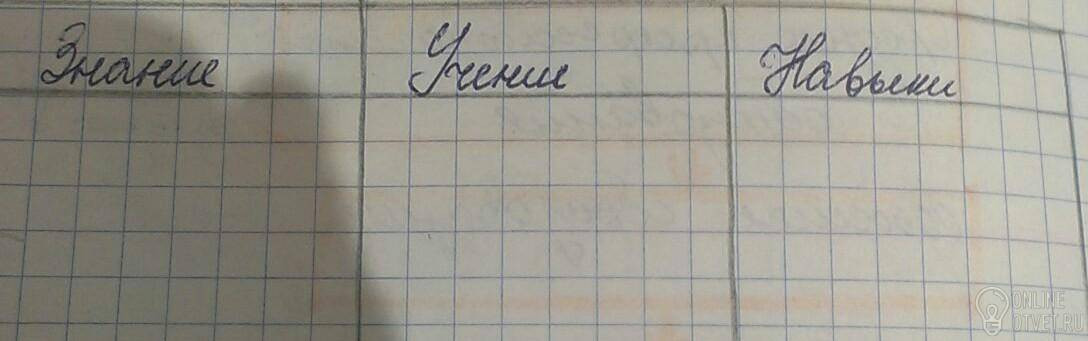 Навыки: счета, письма (в школе); + действия, которые может выполнять человек