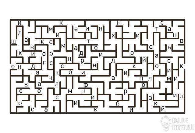 Нужно пройти лабиринт, зачёркивая по пути все буквы. Из оставшихся букв вычеркнуть одинаковые. И получиться слово ЛОВИ.