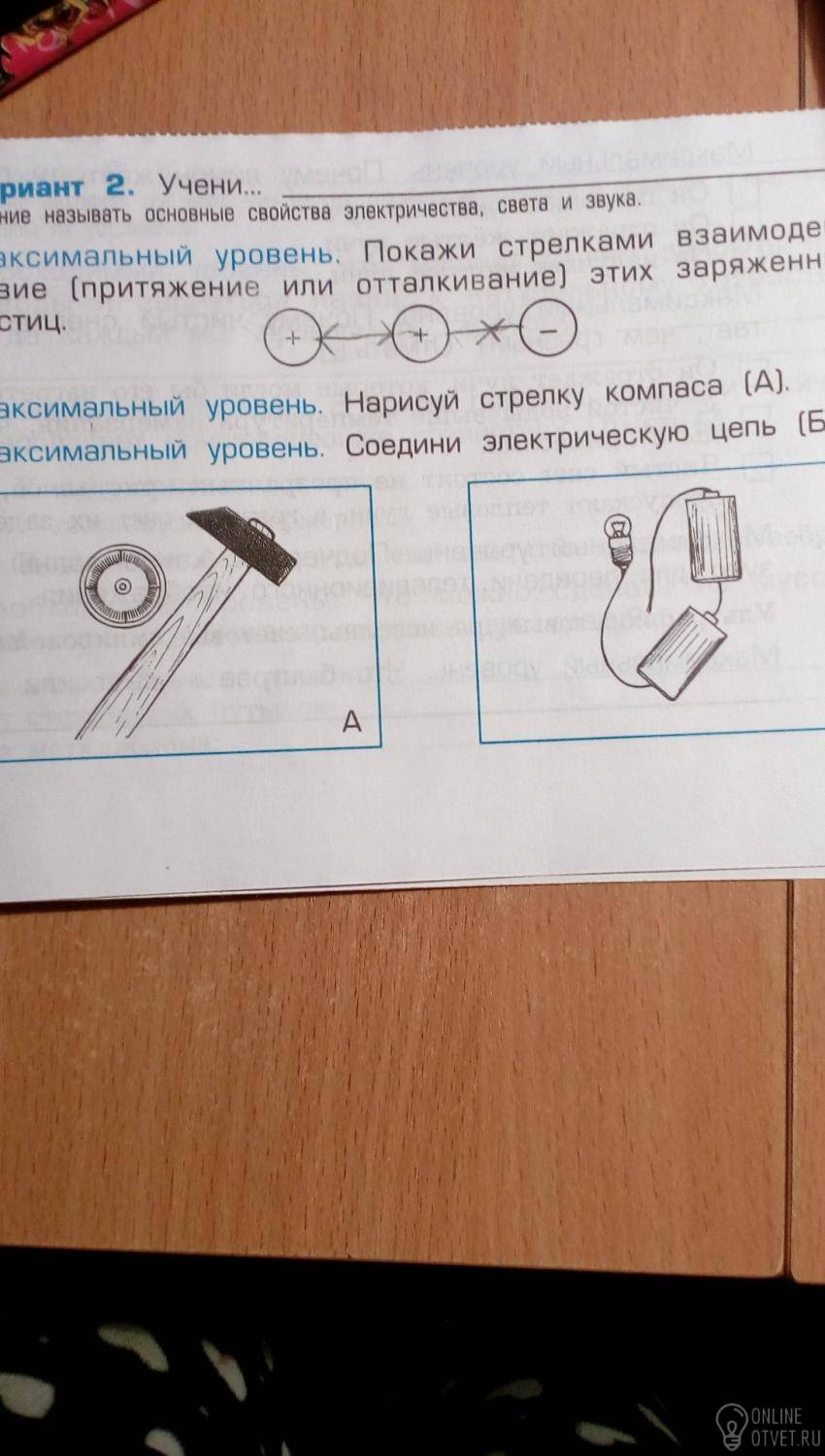 Там в 1 плясы отталкиваются а минус и плюсы притягаются. 2 там где молоток компас бедет смотреть на него . а провод просто соедини с лампочкой