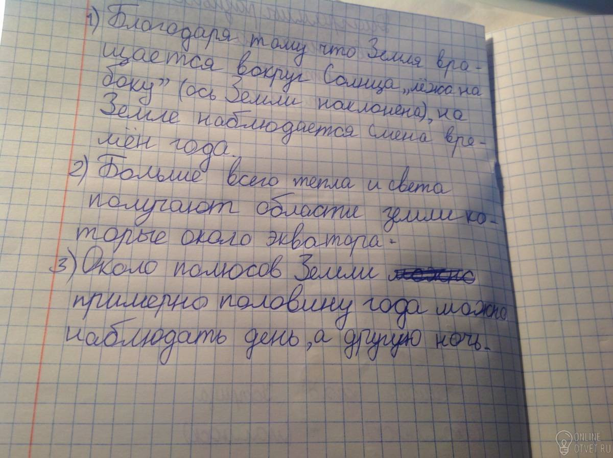 Благодаря тому что Земля вращается вокруг Солнца «лёжа на боку»,на Земле наблюдается :_____________