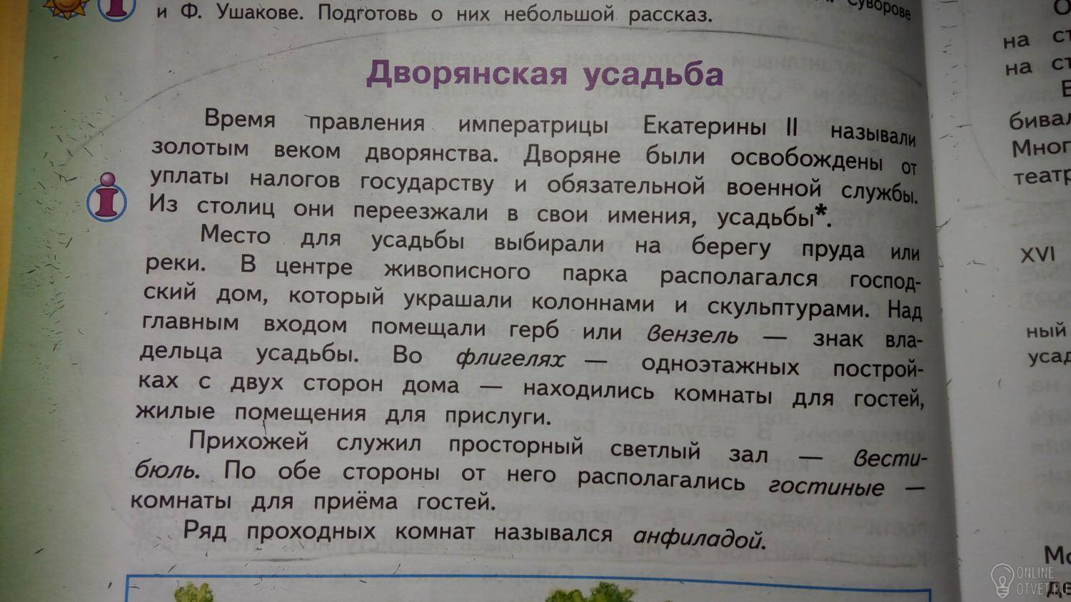 Сегодня я была в дворянской усадьбе которая находилась на берегу пруда. Я иду по аллее парка и вижу господский дом. Он украшен старинными колоннами и скульптурами.