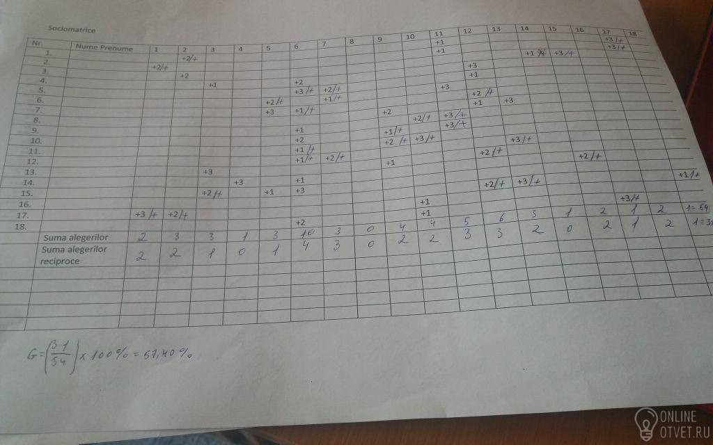 Помогите пожалуйста срочно нужна Социограмма. В таблице представлены 18 девочек и их выбор на цифры в таблице не смотреть считать только + . Нужно сделать социограмму начертить 4 круга и в этих кругах написать сумму выборов и сумму взаимных выборов и всё это соединить стрелками.И дать характеристику.Лидеры группы , Популярные члены группы и отверженные члены группы.