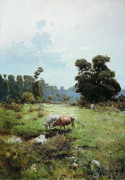 Старые коровы пришли по водопой, лето подходит к концу, трава желтеет... Эта картина вызывает у меня чувства тоски и понимания того, что все когда-то заканчивается..