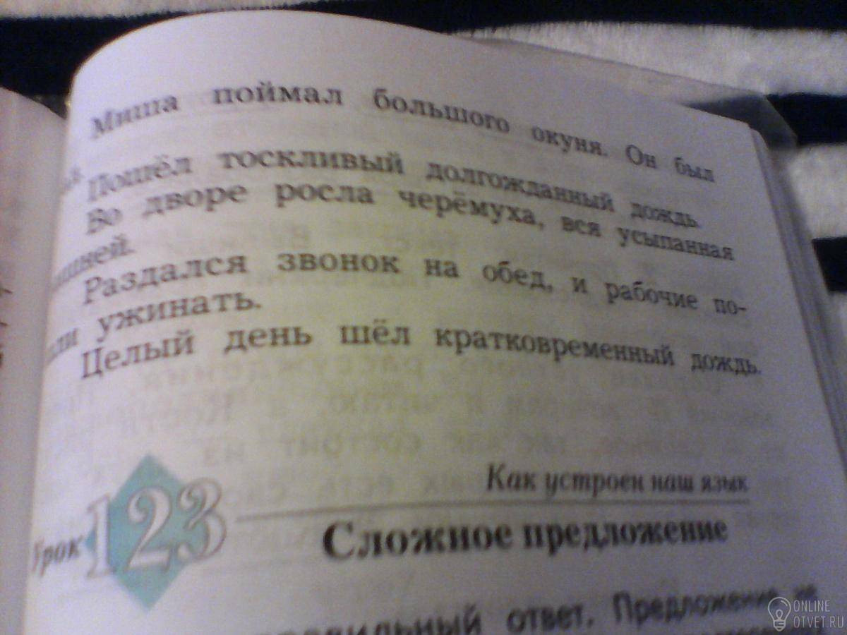 Я не всё знаю ну вот! Миша поймал большого окуня.Мальчик был рад. Раздался звонок на обед и рабочие пошли есть. Целый день шёл сильный дождь.