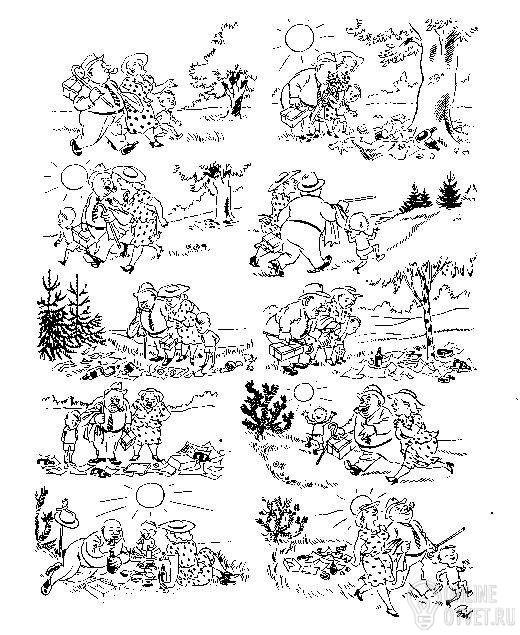Сюжет прост- семья хочет отдохнуть в рощице. но везде следы пребывания дурно воспитанных людей= неубранное за собой. такое же можно увидеть и у нас.