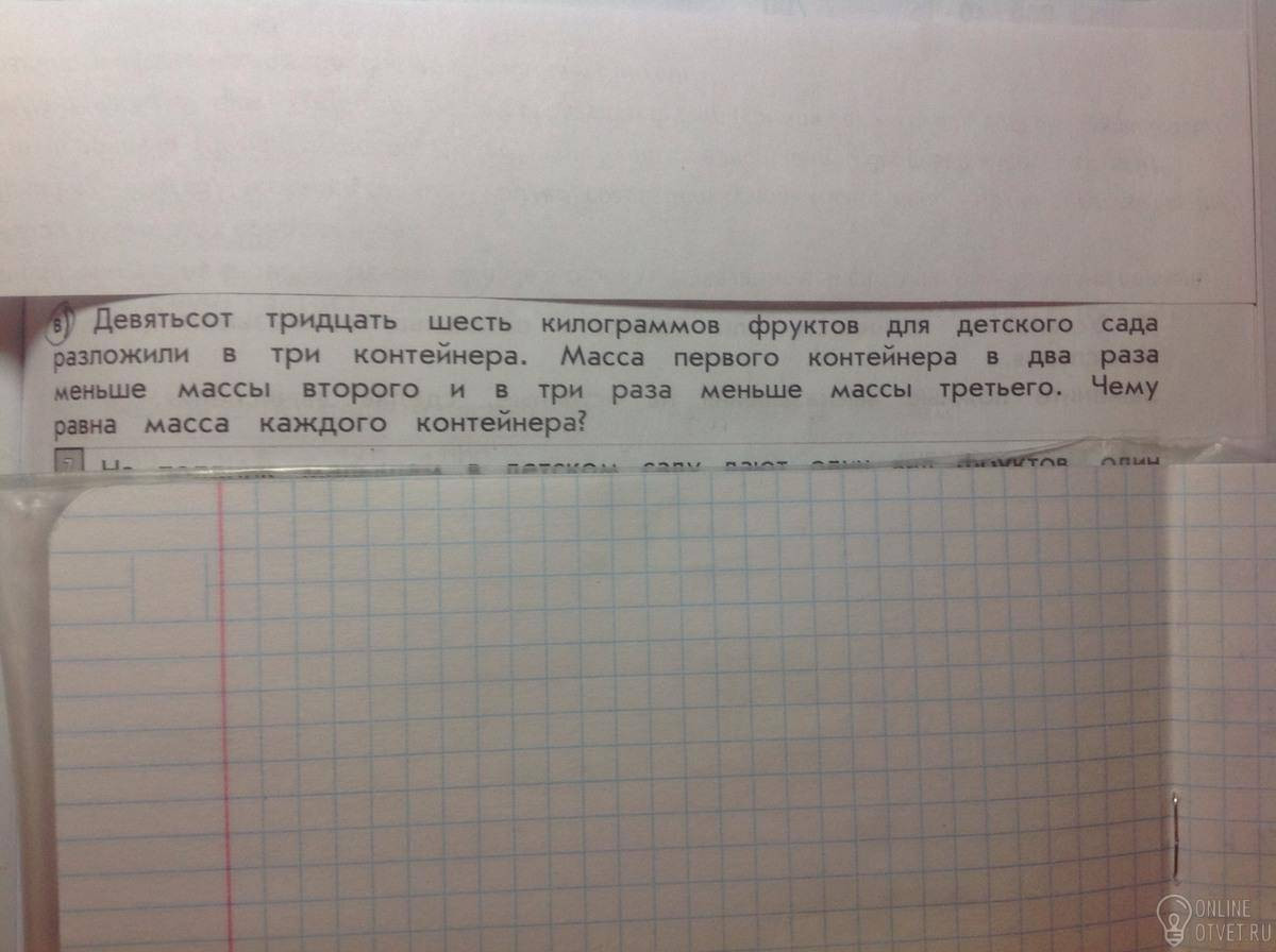 Ответ: 156 кг первый контейнер, 312 кг второй контейнер, 468 кг третий контейнер.