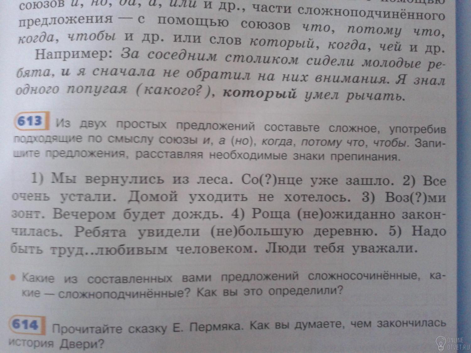 Мы вернулись из леса, потому что солнце уже зашло. Все очень устали, но домой уходить не хотелось. Возьми зонт, потому что вечером будет дождь. Роща неожиданно закончилась, и ребята увидели небольшую деревню. Надо быть трудолюбивым человеком, чтобы люди тебя уважали.