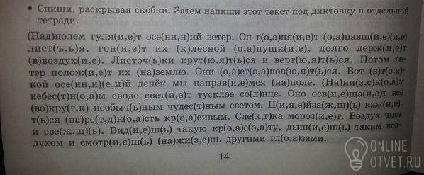 Над полем гуляет осенний ветер. Он гоняет опавшие листья, гонит их к лесной опушке, долго держит в воздухе. Листочки крутятся и вертятся. Потом ветер положит их на землю, и они остановятся. Вот в такой осенний денёк мы выходим из дома. Мы направимся на поле. На низком небесном своде светит тусклое солнце. Оно освещает всё вокруг необычным чудесным светом. Пейзаж кажется на редкость красивым. Слегка морозит. Воздух чист и свеж. Когда видишь такую красоту и дышишь таким воздухом, то на душе становится радостно.