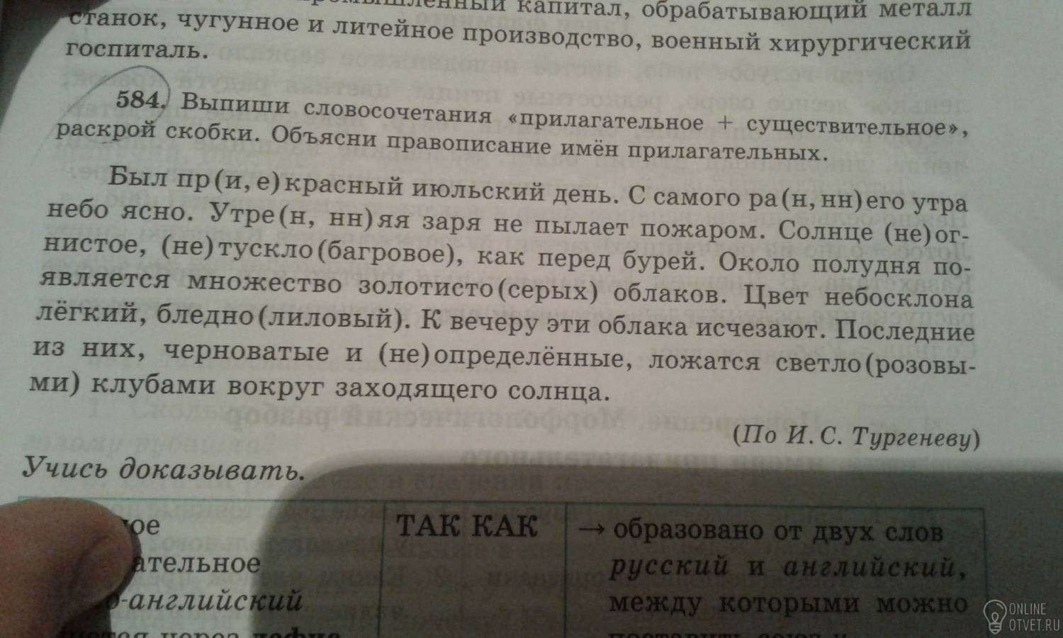 584. Был прекрасный июльский день. С самого раннего утра небо ясно. Утренняя заря не пылает пожаром. Солнце не огнистое, не тускло-багровое, как перед бурей. Около полудня появляется множество золотисто-серых облаков. Цвет небосклона лёгкий, бледно-лиловый. К вечеру эти облака исчезают. Последние из них, черноватые и неопределённые, ложатся светло-розовыми клубами вокруг заходящего солнца