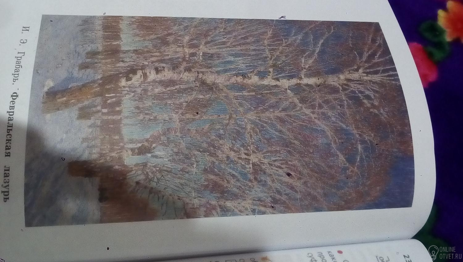 Это немного напоминает зимние узоры на стекле.Сквозь стволы и ветки хорошо видно безмятежное лазурное небо.Вверху картины его синева яркая,насыщенная,а у горизонта цвет неба светлеет,становясь почти белым.Эта картина наполнена ожиданием скорого тепла и радостного светлого пробуждения природы!