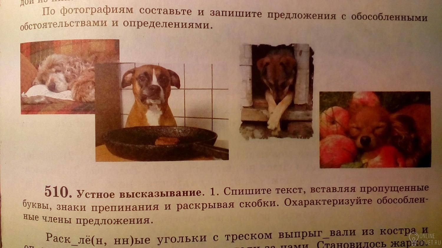 Песик/, съевший со сковородки почти всю еду,/ посмотрел в камеру.( обособленное определение)