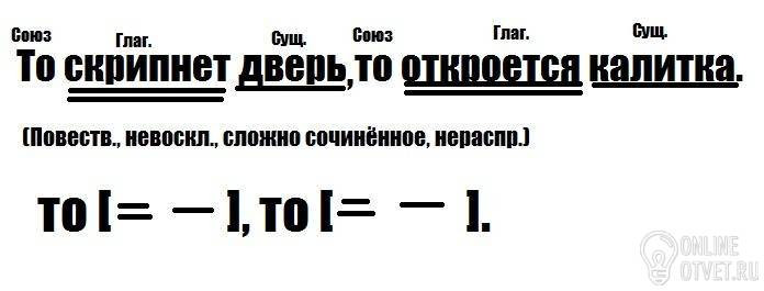 Синтаксический разбор предложения. То скрипнет дверь то откроется калитка