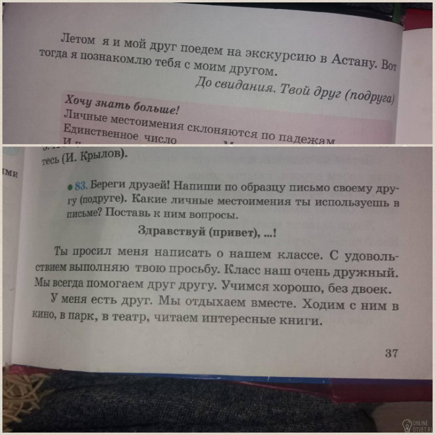 Еще я(кто?) хожу на рисование. Здесь я(кто?) познакомился с Аделей. Она(кто?) очень хорошая. Мы(кто?) вместе ходим на кружок, а после гуляем, ходим на стадион, делаем домашнее задание и разговариваем по душам.