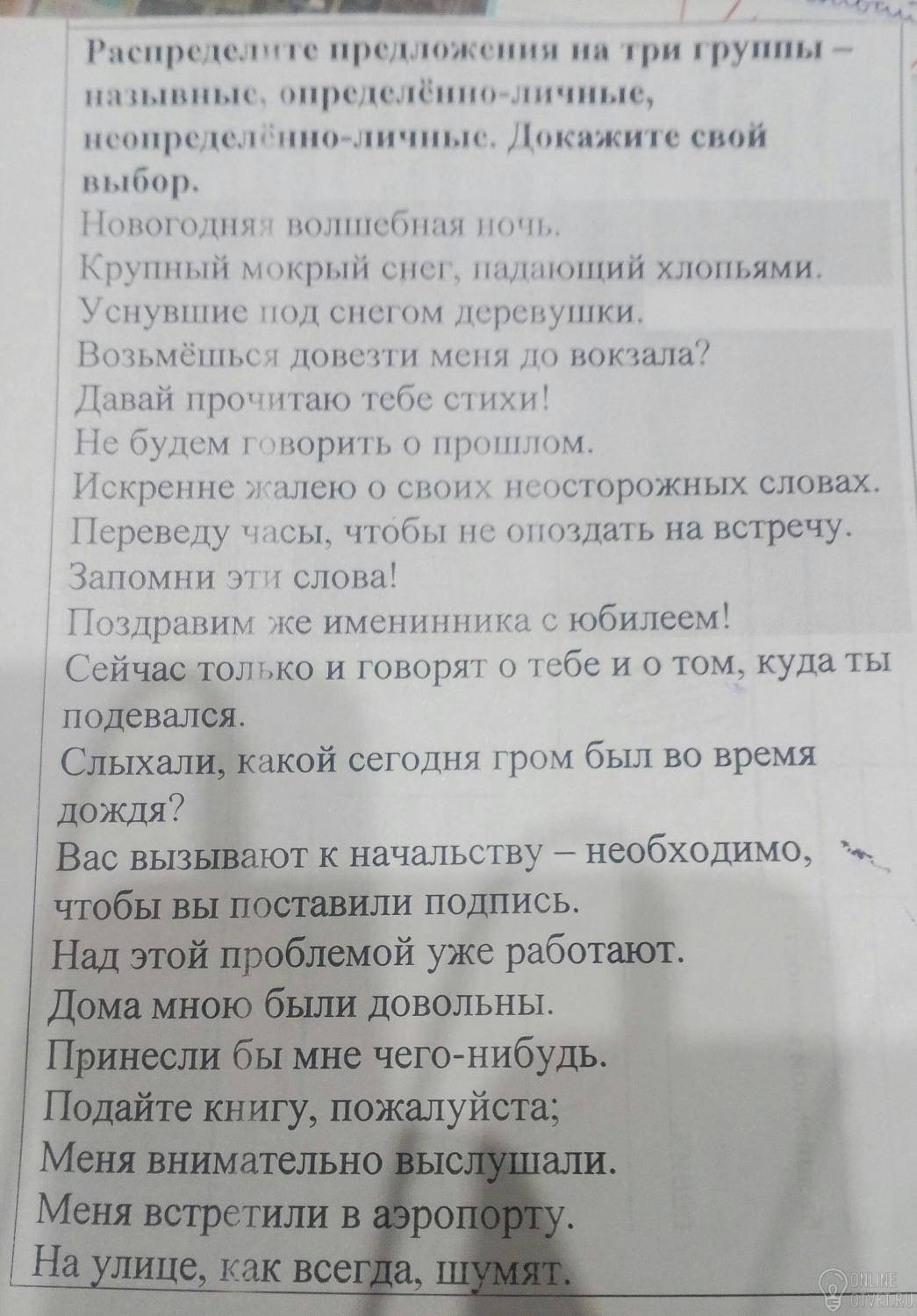 Распределите предложения на три группы - назывные, определенно-личные, неопределенно-личные.