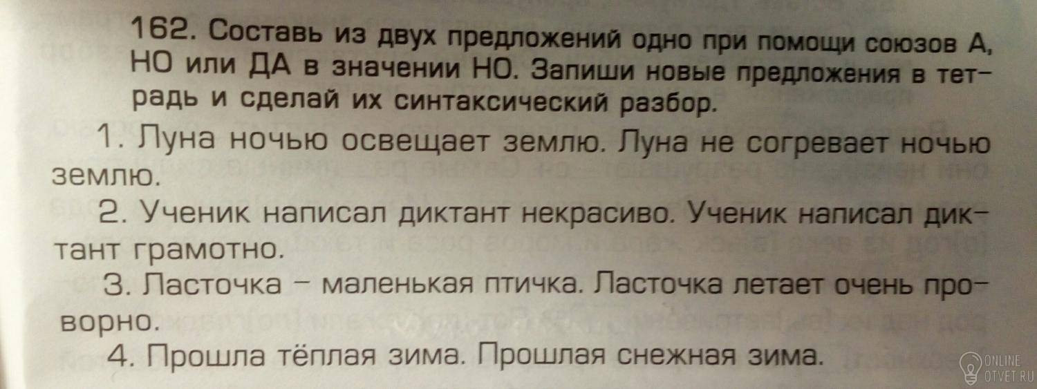 Луна ночью освещает землю, но не согревает.( противопоставление)[луна-подлежащее, ночью -обстоятельство, освещает-сказуемое, не согревает-сказуемое]