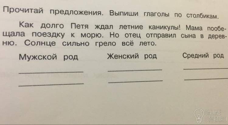 Прочитай предложения. Выпиши глаголы по столбикам.