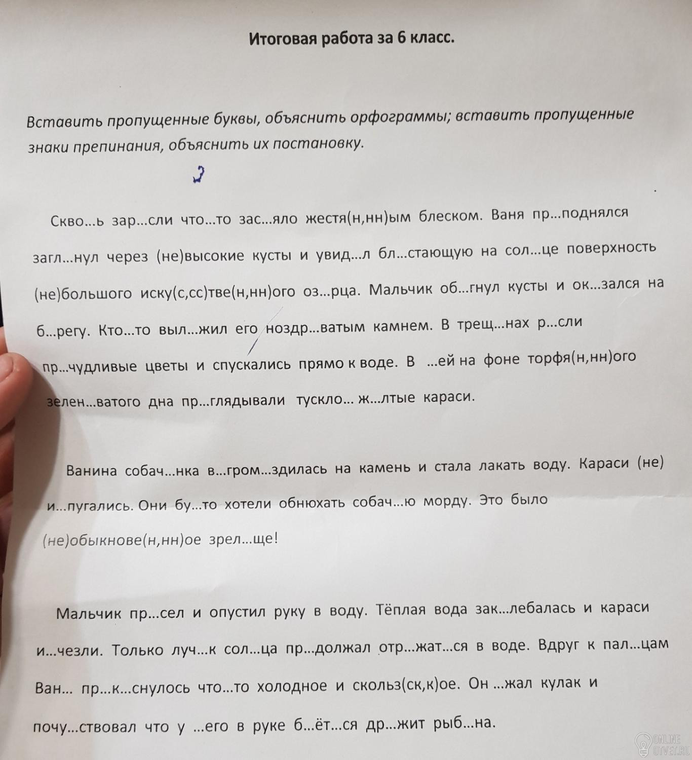 мальчик присел и опустил руку в воду. теплая вода заколебалась и караси исчезли. только лучик солнца продолжал отражаться в воду. вдруг к пальцам вани прикоснулось что-то холодгое и скользкое. он сжал кулак и почувствовал , что в него в руке бьётся ,дрожит рыбина