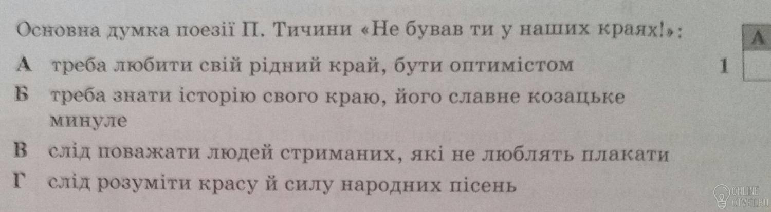 Не нашли подходящего ответа на вопрос или ответ отсутствует? Воспользуйтесь поиском по сайту, чтобы найти все ответы на похожие вопросы в разделе Українська література.