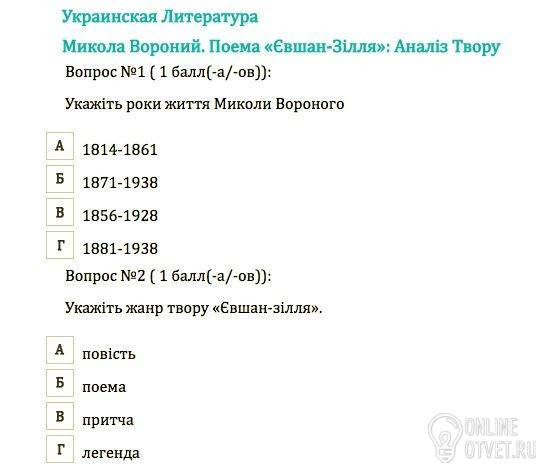 Не нашли подходящего ответа на вопрос или ответ отсутствует? Воспользуйтесь поиском по сайту, чтобы найти все ответы на похожие вопросы в разделе Українська література.
