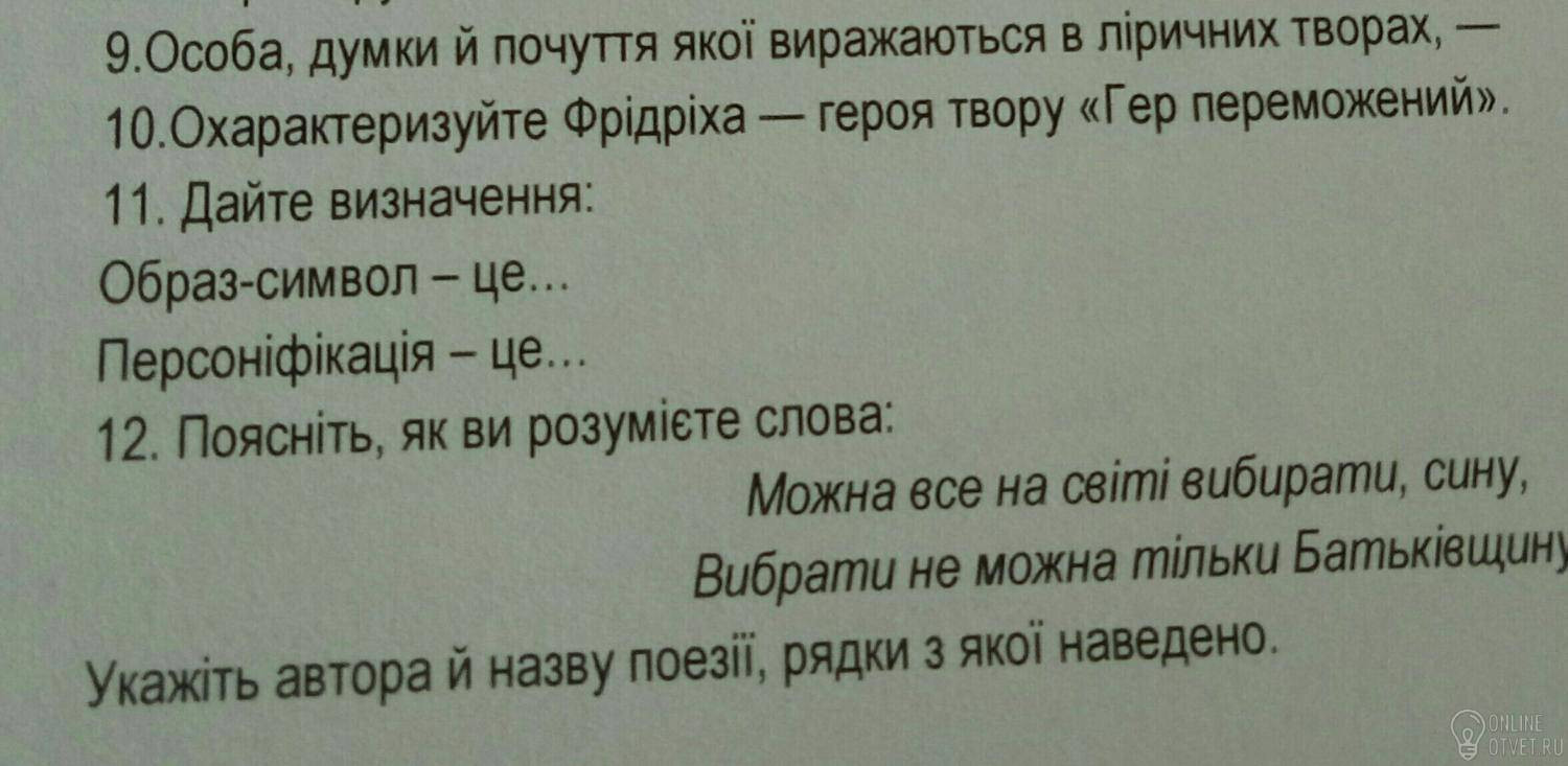 Не нашли подходящего ответа на вопрос или ответ отсутствует? Воспользуйтесь поиском по сайту, чтобы найти все ответы на похожие вопросы в разделе Українська література.