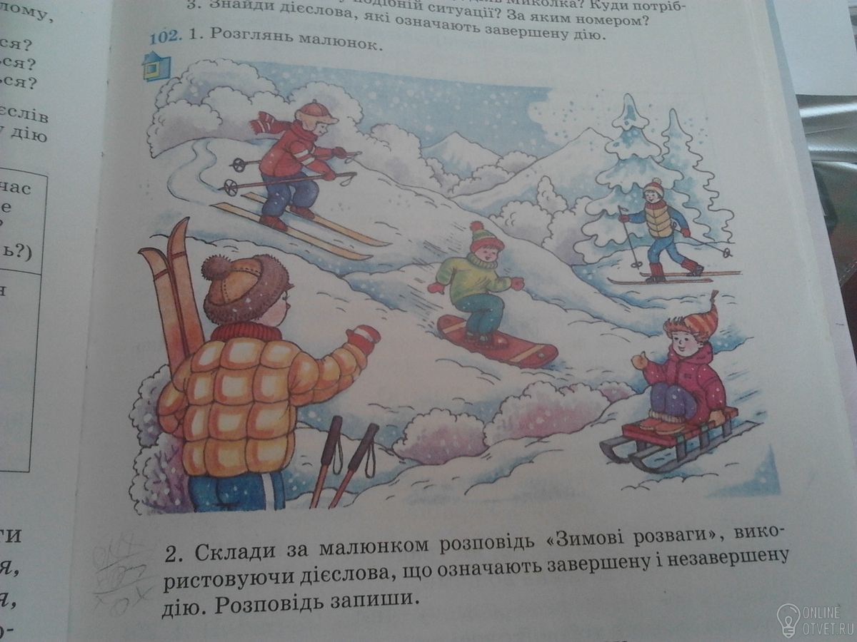Прийшла сувора зима. Замерзли річки й озера. Поля вкрились білим снігом. Тепер можна кататись на лижах. Ця розвага дуже подобається дітям. На високих і низеньких гірках можна побачити тих, хто гарно катається на лижах і тих, хто тільки вчиться. Найменші діти спускаються на санчатах.