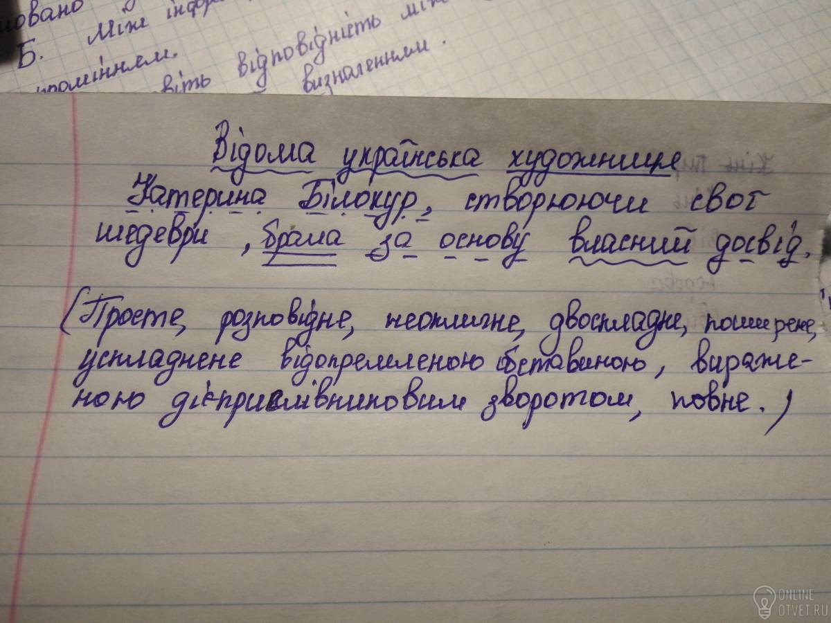 Полный синтаксический разбор предложения :Відома українська художниця Катерина Білокур,створюючи свої шедеври, брала за основу власний досвід.